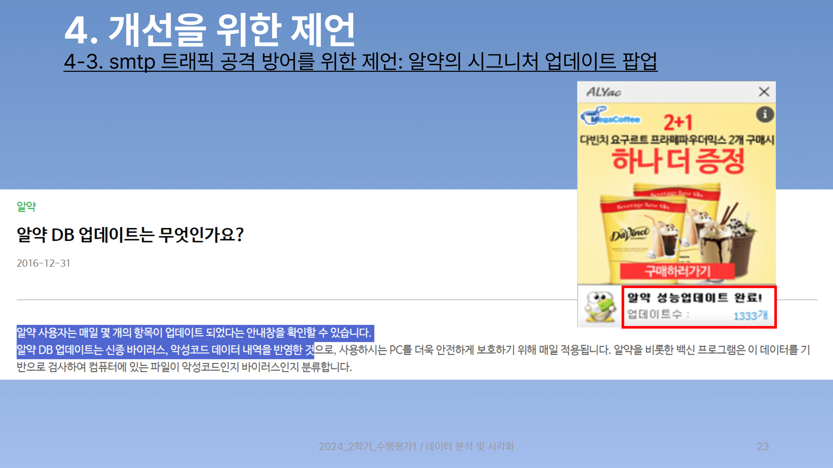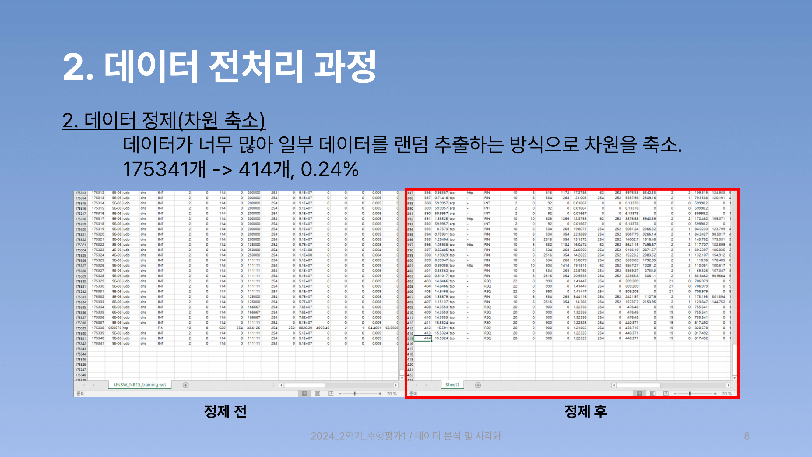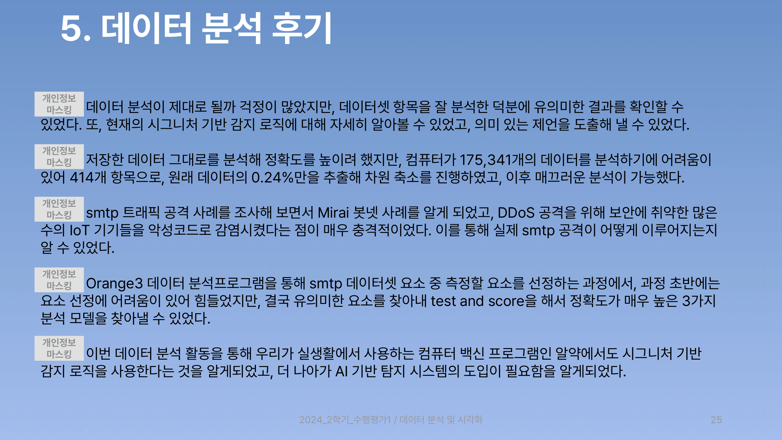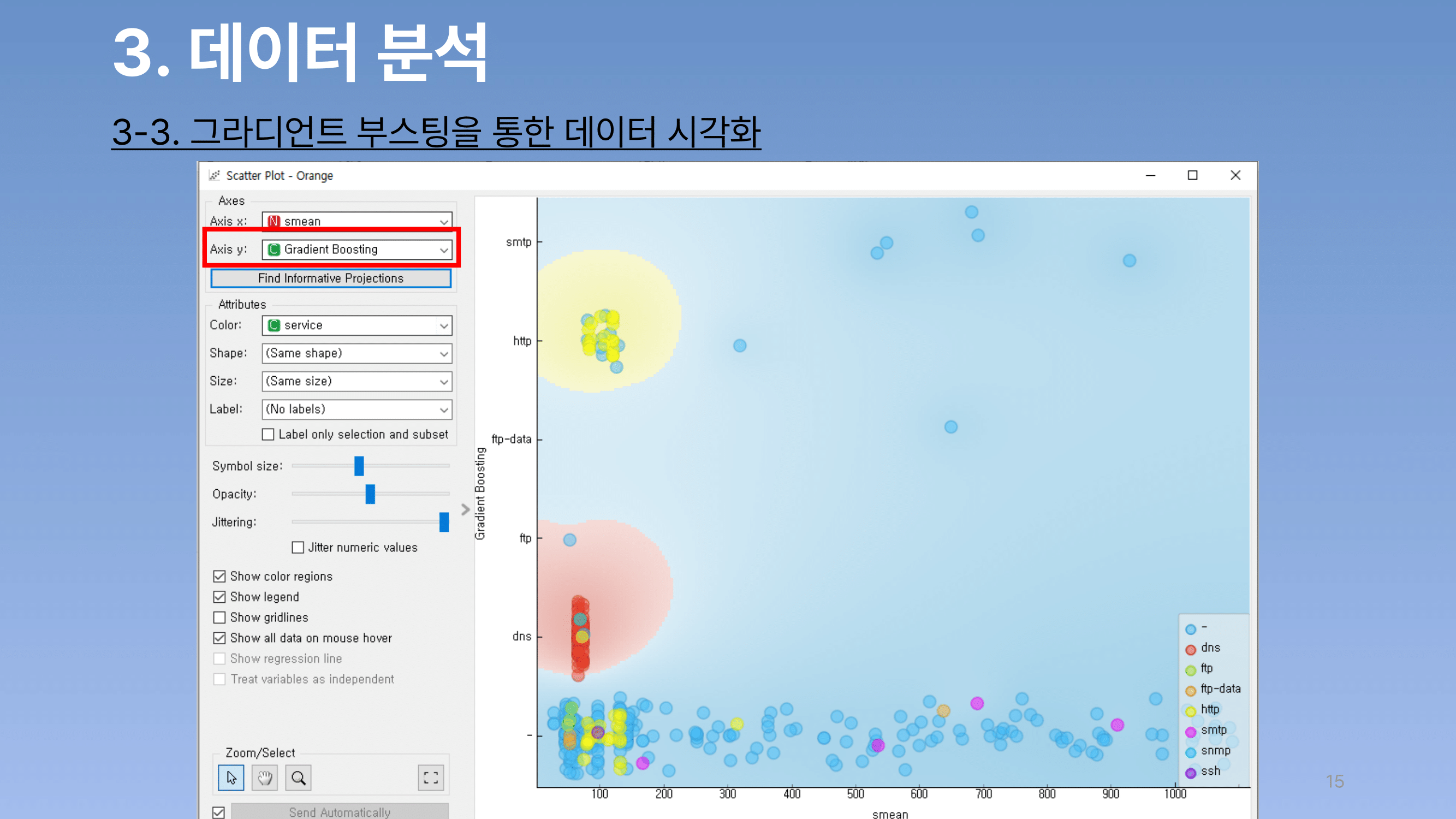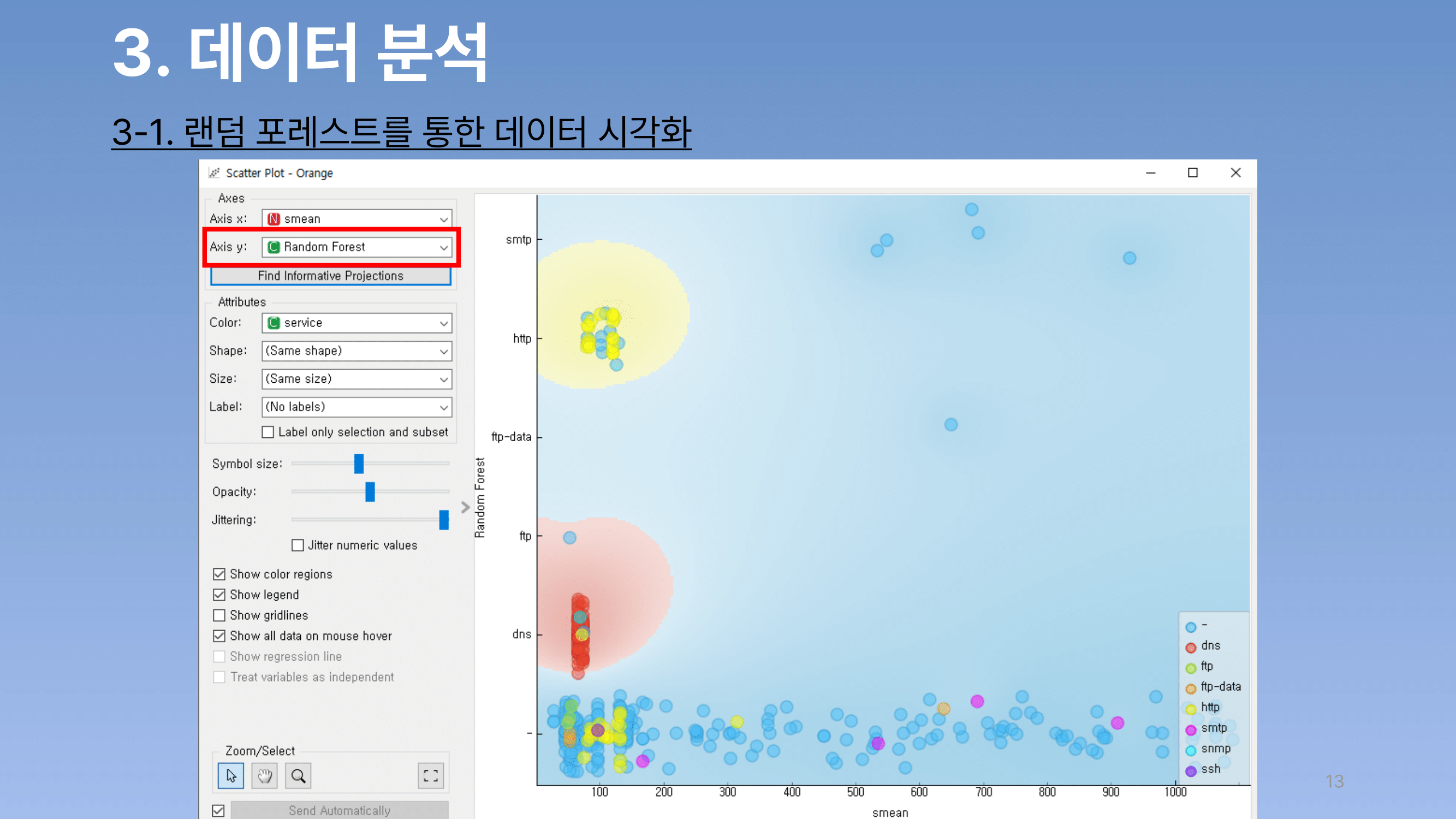 μΈ UNSW-NB15λ₯Ό μ ν μ°κ΅¬ μ°Έκ³ ν΄ Orange3λ₯Ό ν΅ν΄ μκ°νμ μ±κ³΅νκ³ , μ΄λ₯Ό κΈ°λ°μΌλ‘ κ³ μ°°κ³Ό μ μΈμ λνμ΅λλ€.