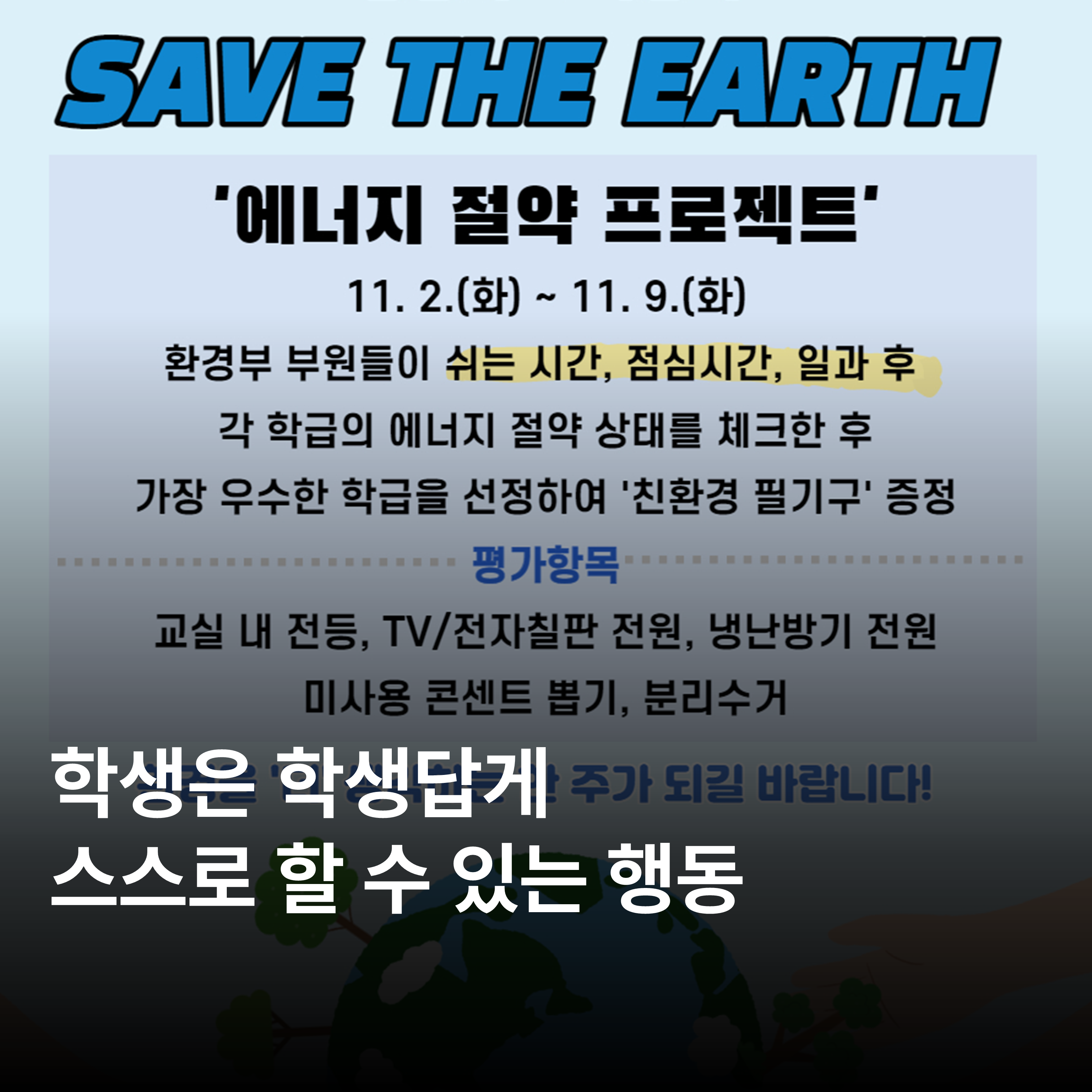 κ·Έλ λ€κ³ νμμ νλμ΄ μμ 무μλ―Ένλ€λ 건 μλλλ€. νμμ νμλ΅κ² μ€μ€λ‘ ν μ μλ νλμ, νκ΅μ μ λΆλ ννΈννμ λμ