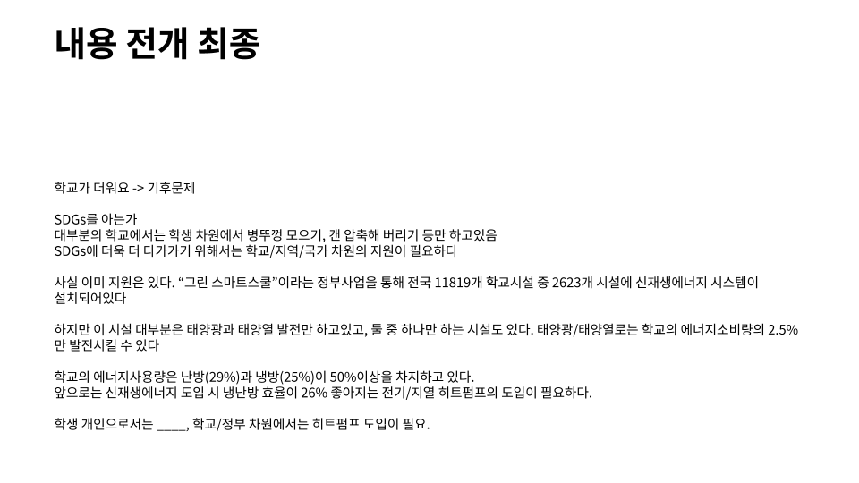 μ μ§μκ°λ₯κ²½μ μ¬λ‘λ₯Ό μκ°νλ©° νμμ νλλ μ΄κ΅¬λμ΄μΌ νλ€λ₯Ό μ£Όμ λ° μ κ°λ°©μμΌλ‘ μ€μ νλλ°, λ μ£Όμ κ° μ°κ΄μ±μ΄ λ¨μ΄μ§λ€κ³ νλ¨λμ΄, μ£Όλ³ νκ΅μ μ¬λ‘λ₯Ό μκ° ν μ°λ¦¬κ° μμΌλ‘ λμκ°μΌ ν λ°©ν₯μ±μ μ μνλ μͺ½μΌλ‘ λ°λμμ΅λλ€.
