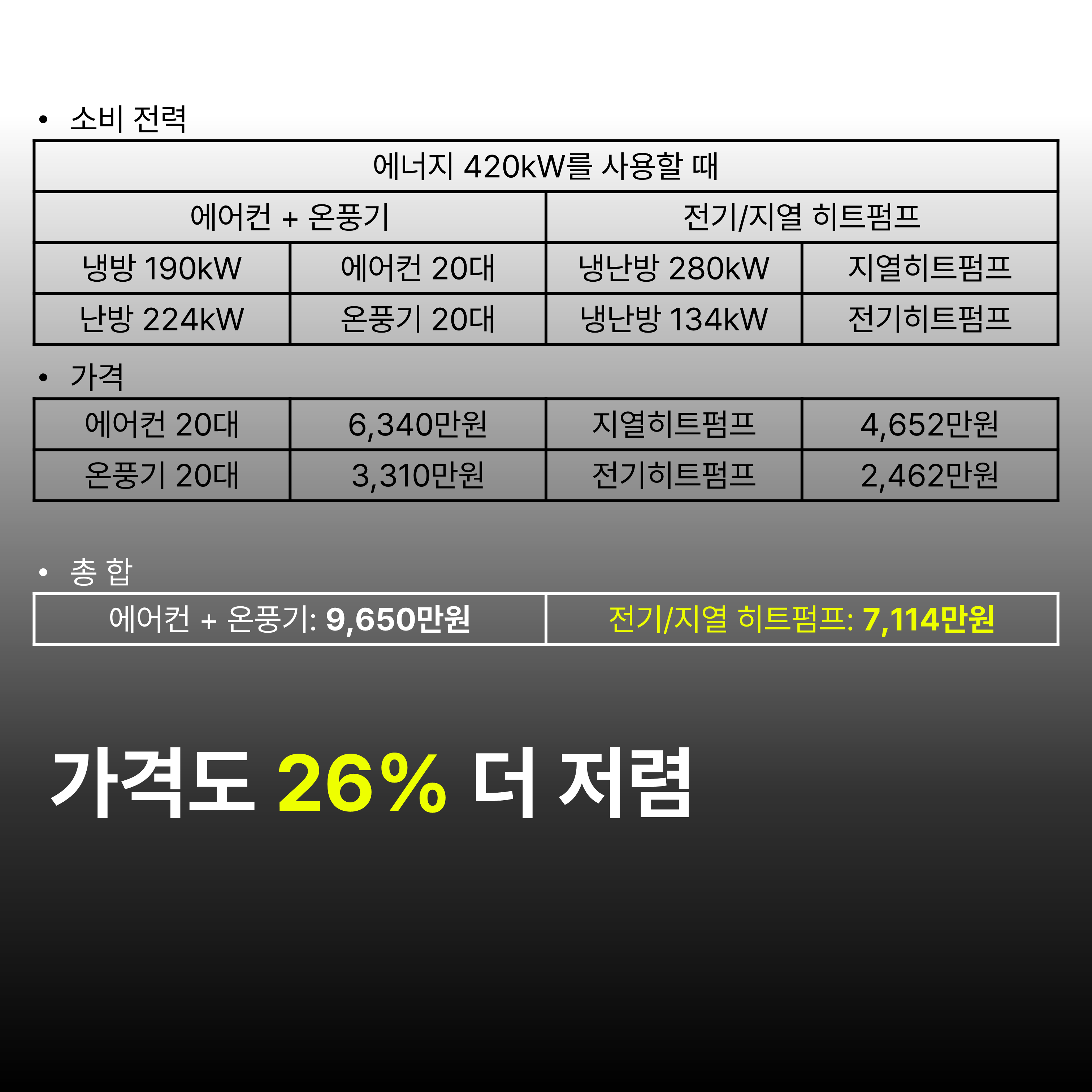 κ°μ μλμ§ μ¬μ©λ λλΉ μμ€ κ°κ²©μ μ§μ κ³μ°ν΄ λ³Έ κ²°κ³Ό μ κΈ°/μ§μ΄ ννΈννλ₯Ό μ¬μ©ν λκ° μμ΄μ»¨κ³Ό μ¨νκΈ°λ₯Ό μ¬μ©ν λ λ³΄λ€ 26% λ μ λ ΄ν©λλ€.