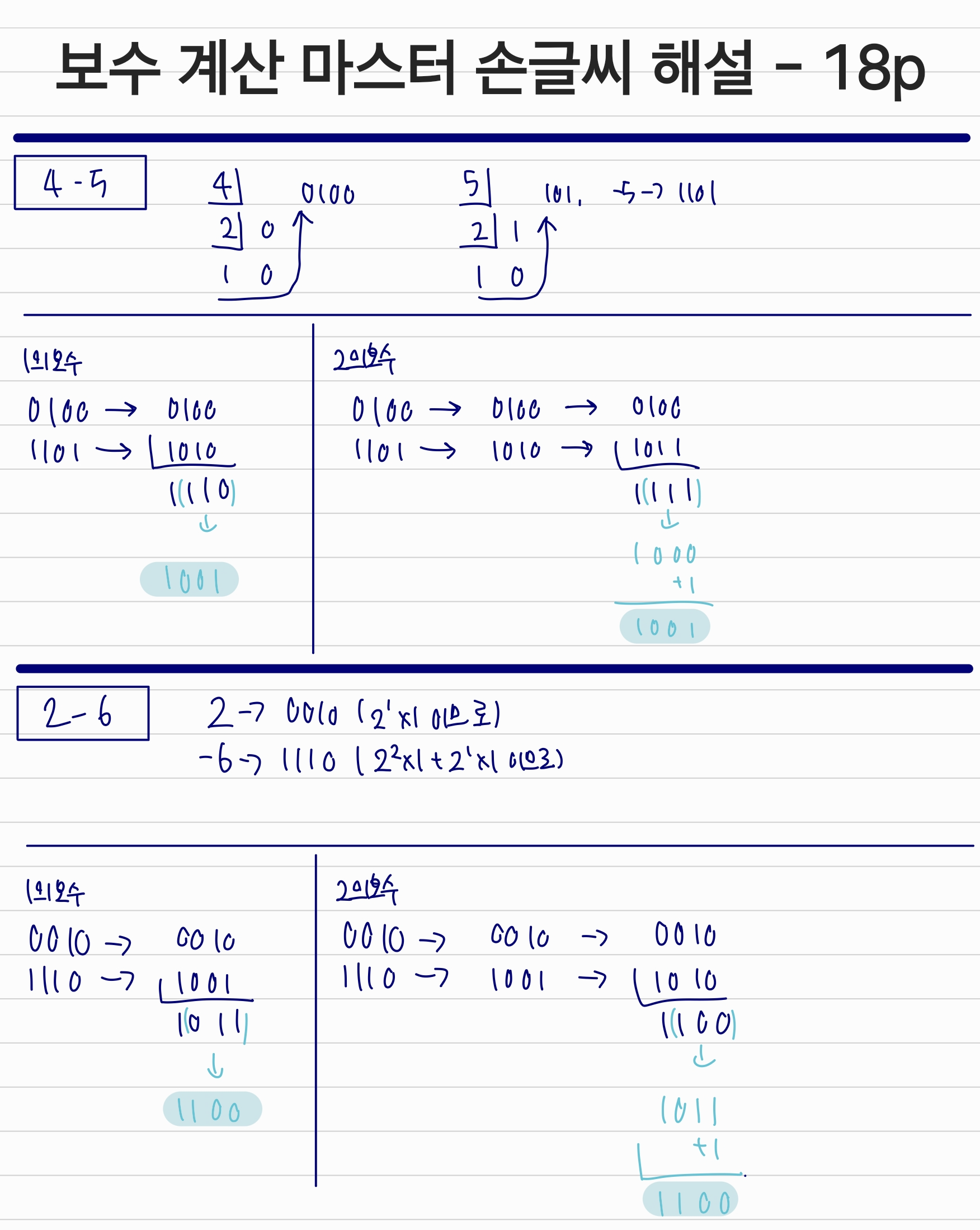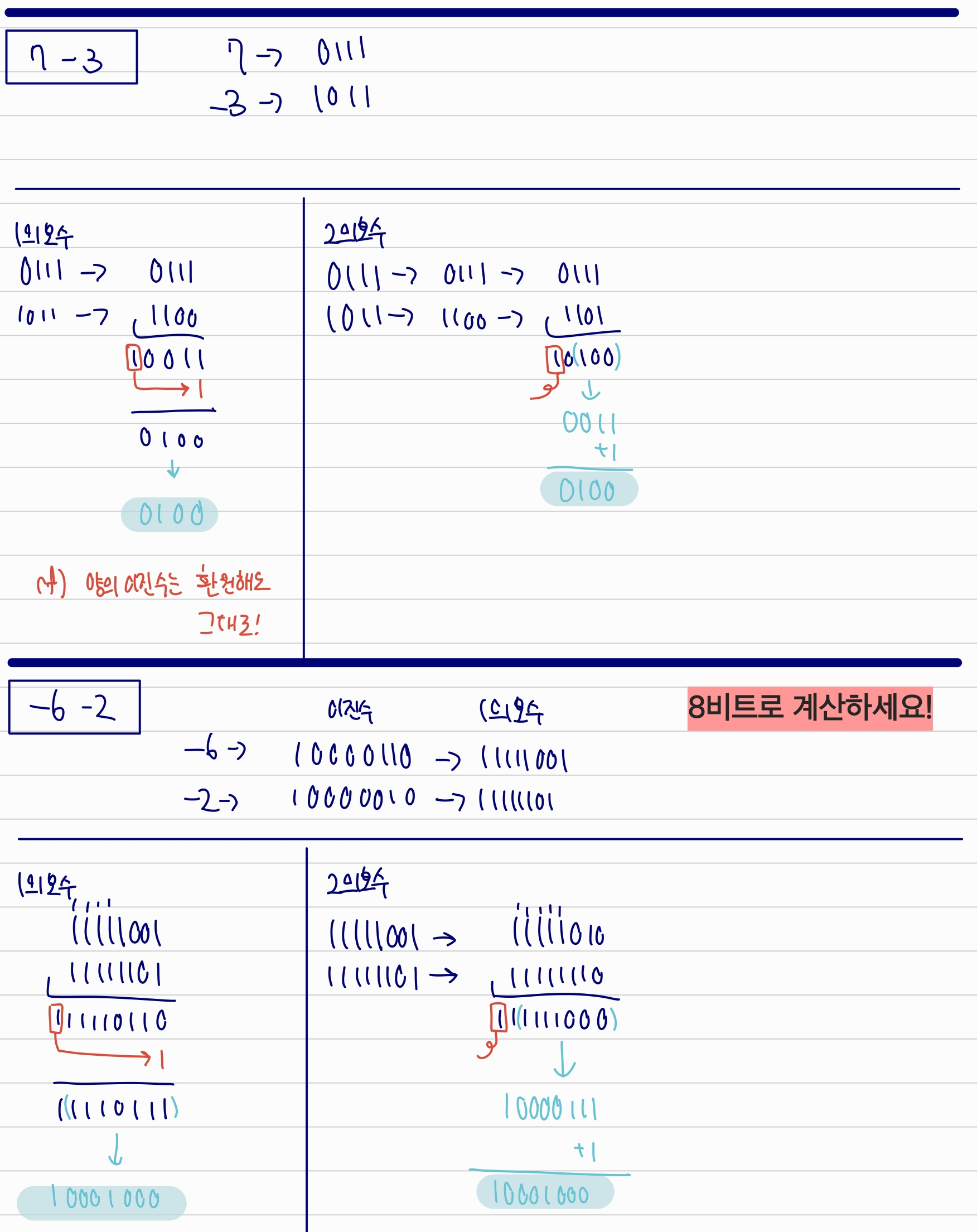| 20 | -4๋ ์ด์ง์ 1100์ด๊ณ -7์ ์ด์ง์ 1111 | -4๋ ์ด์ง์ 10000100์ด๊ณ -7์ ์ด์ง์ 10000111 |