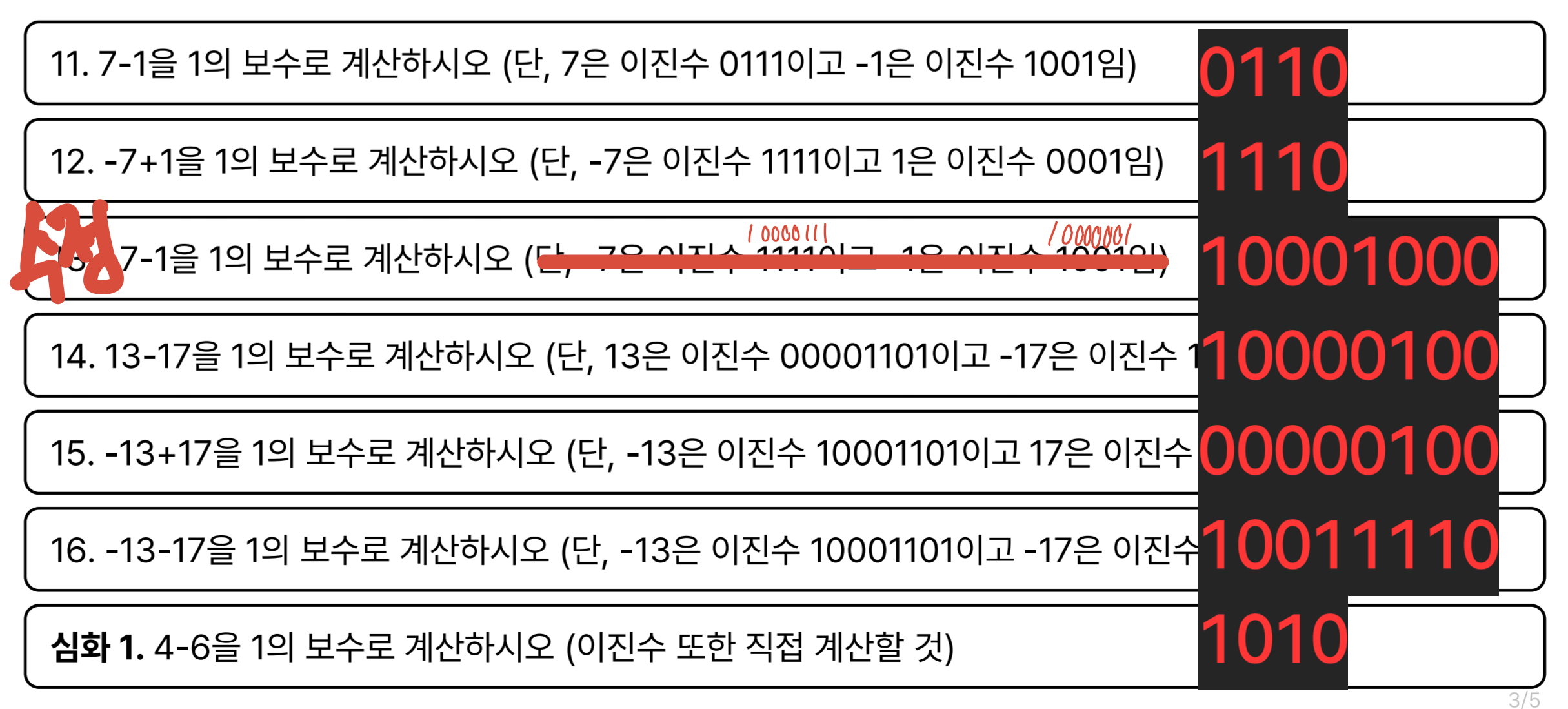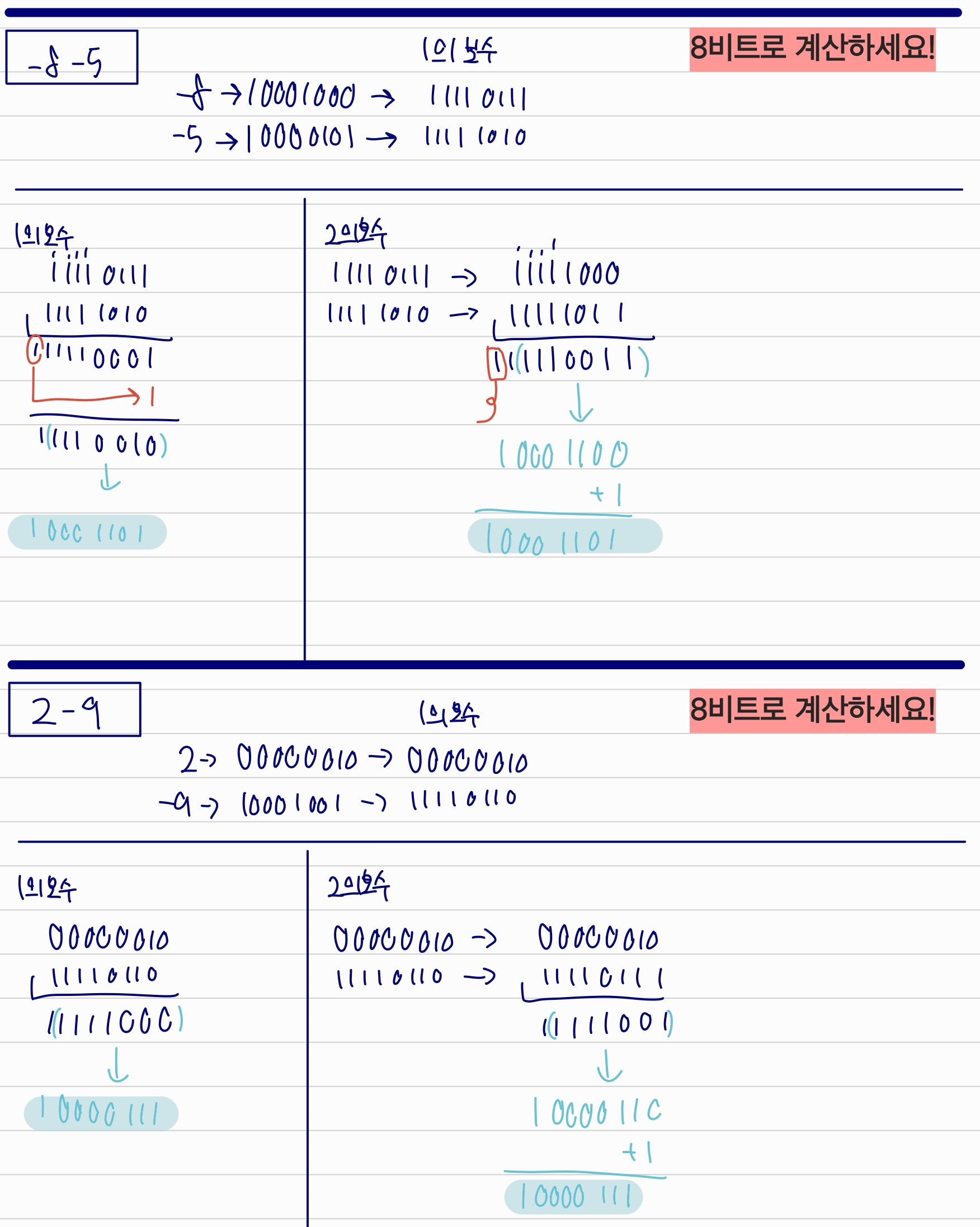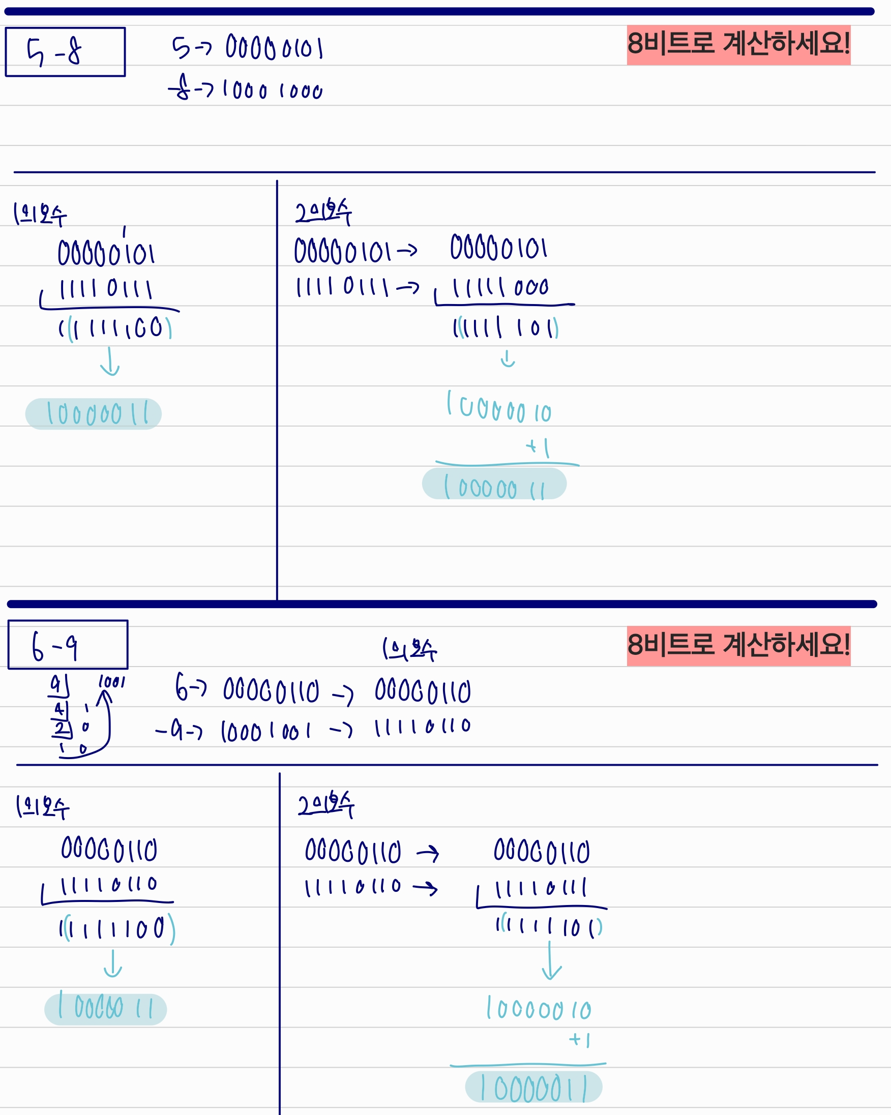 | 13 | -7์ ์ด์ง์ 1111์ด๊ณ -1์ ์ด์ง์ 1001 | -7์ ์ด์ง์ 10000111์ด๊ณ -1์ ์ด์ง์ 10000001 |