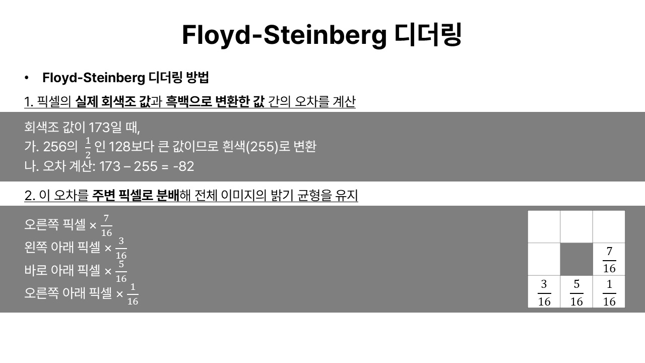 3. 256단계 νšŒμƒ‰μ‘° λ³€ν™˜ 및 4. Floyd-Steinberg 디더링